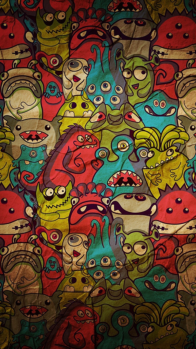 Description: A colorful background with many cartoon characters on it.