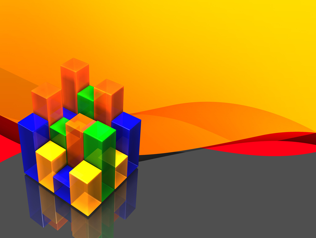 Description: A colorful background with a cube in the middle of it and a yellow background behind it with a red.