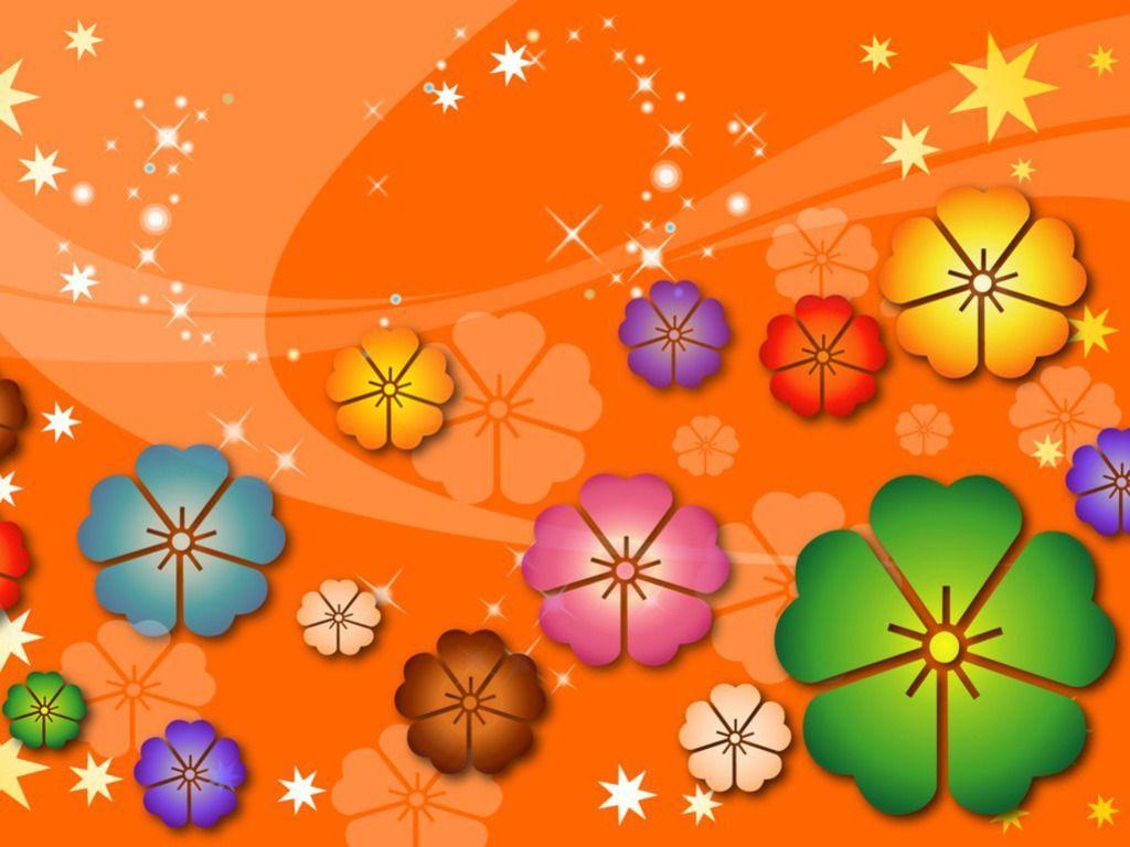 Description: A colorful background with flowers and stars on it's sides and a star in the middle of the image.