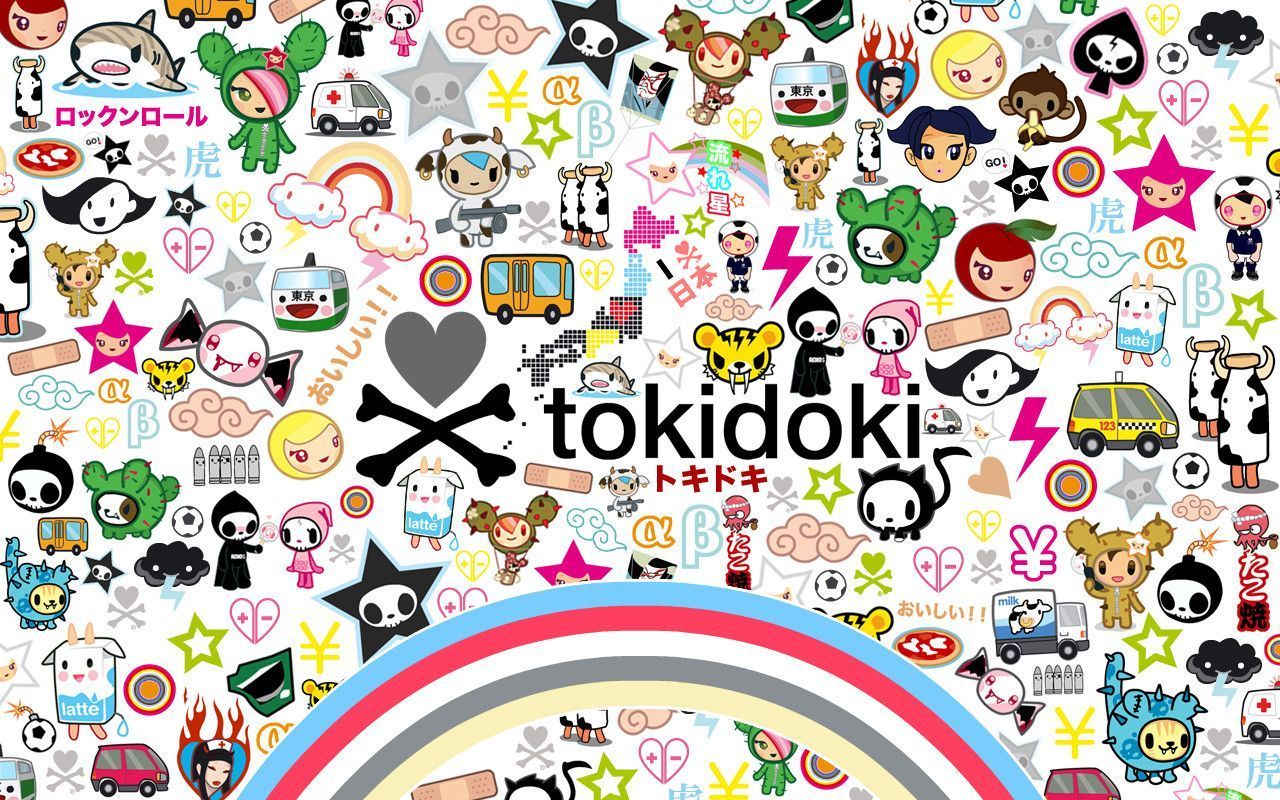 Description: A colorful background with a lot of stickers on it and a rainbow in the middle of the image.
