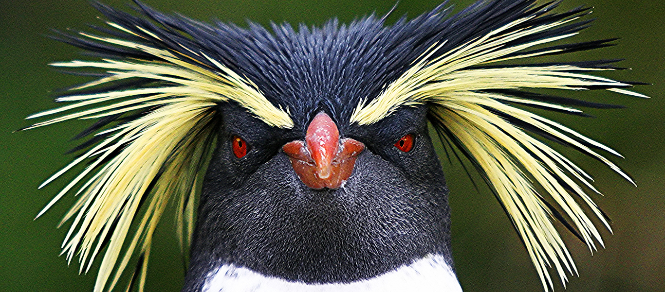 Description: A close up of a bird with a very colorful headpiece on it's head and a green background.
