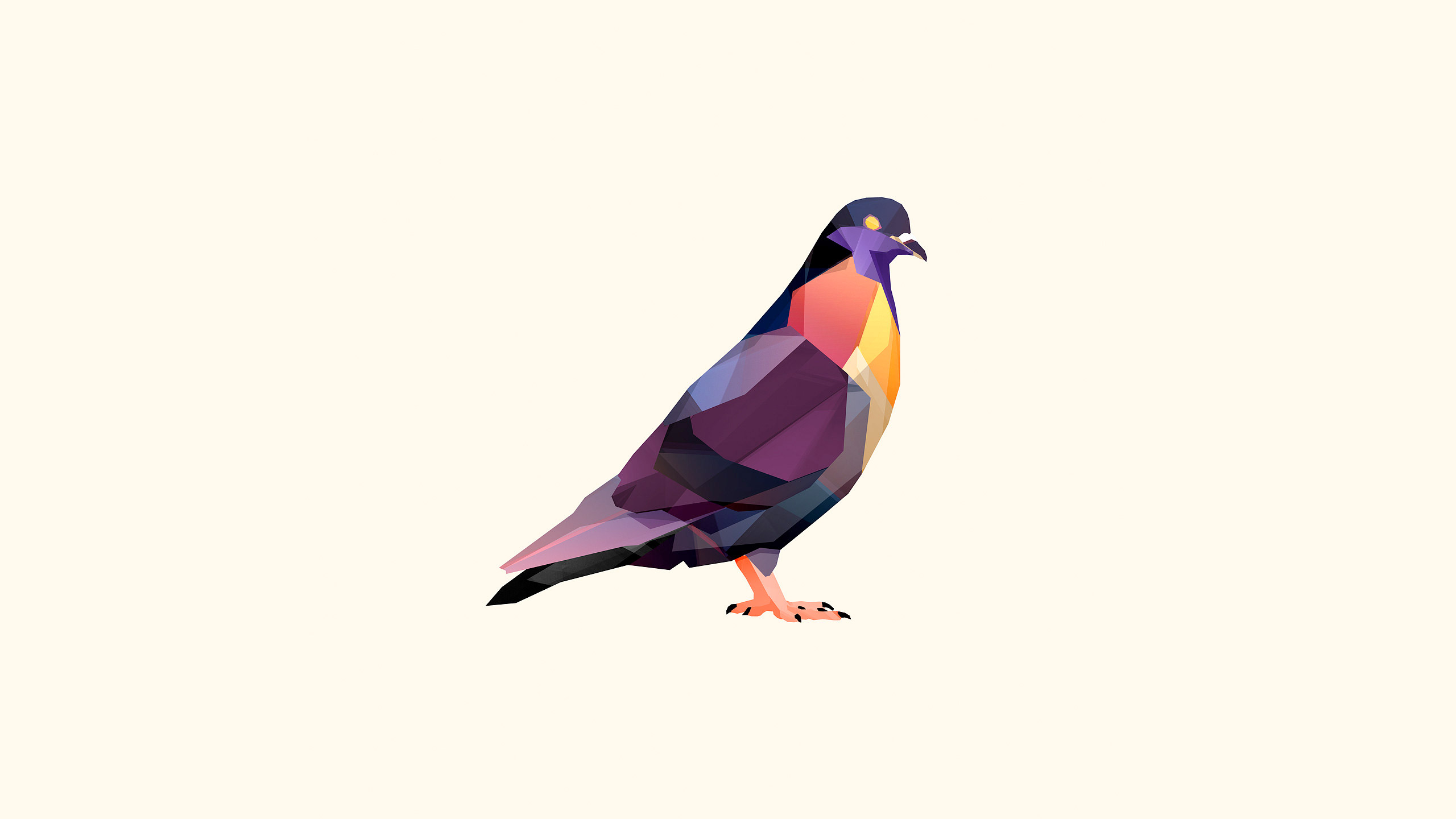 Description: A colorful bird sitting on top of a white surface with a white background and a white wall behind it.