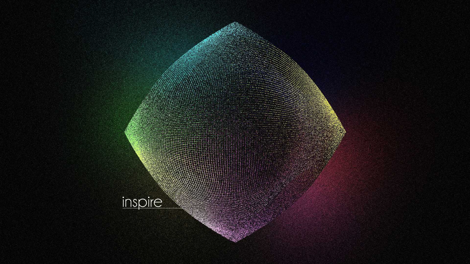 Description: A colorful background with a black background and a white text that reads inspire on it in the center of the image.