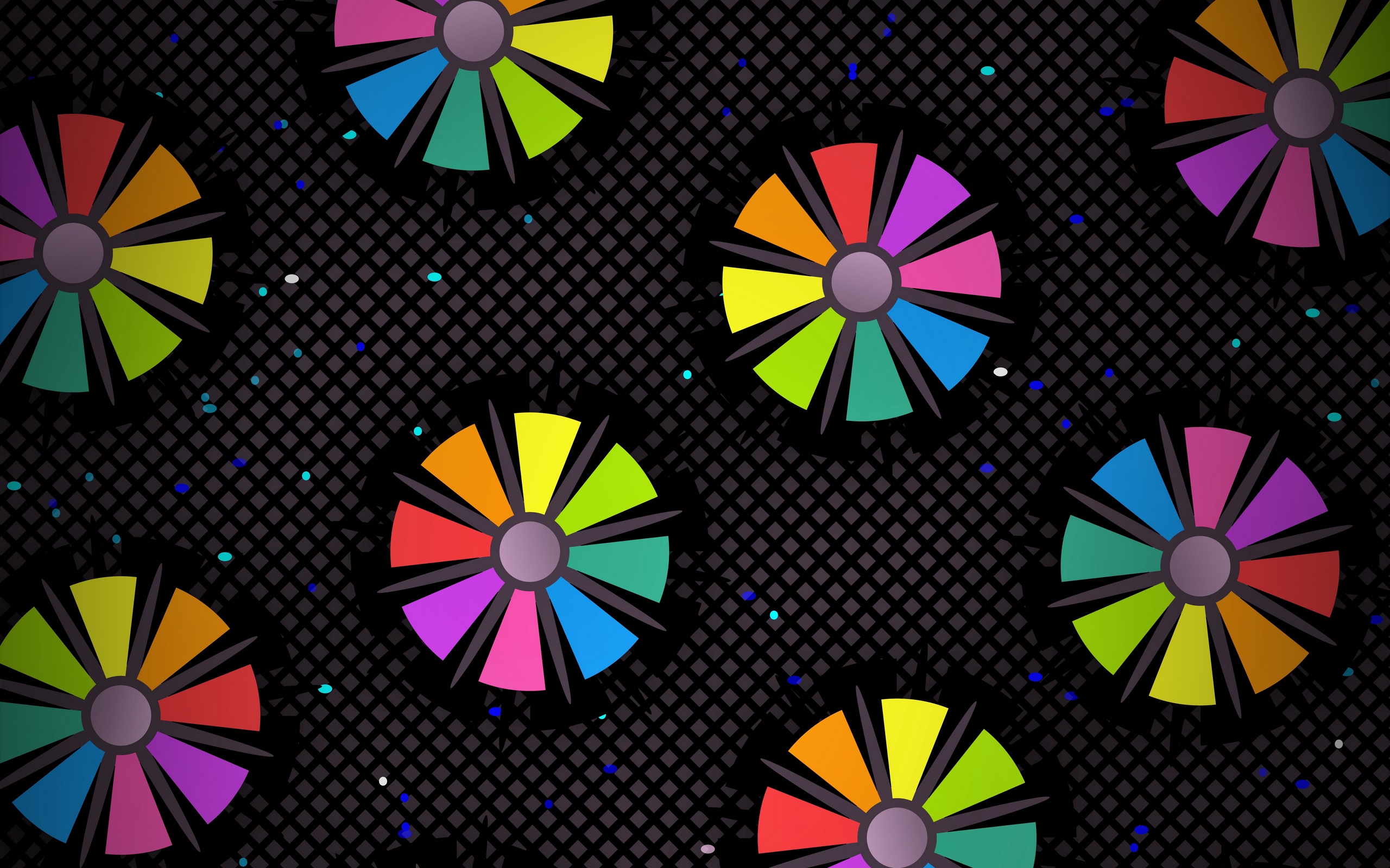 Description: A colorful pattern of circles on a black background with dots and dots in the center of the circle.
