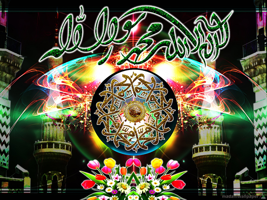 Description: A colorful picture of a clock surrounded by lights and flowers in a dark background with a caption that reads.