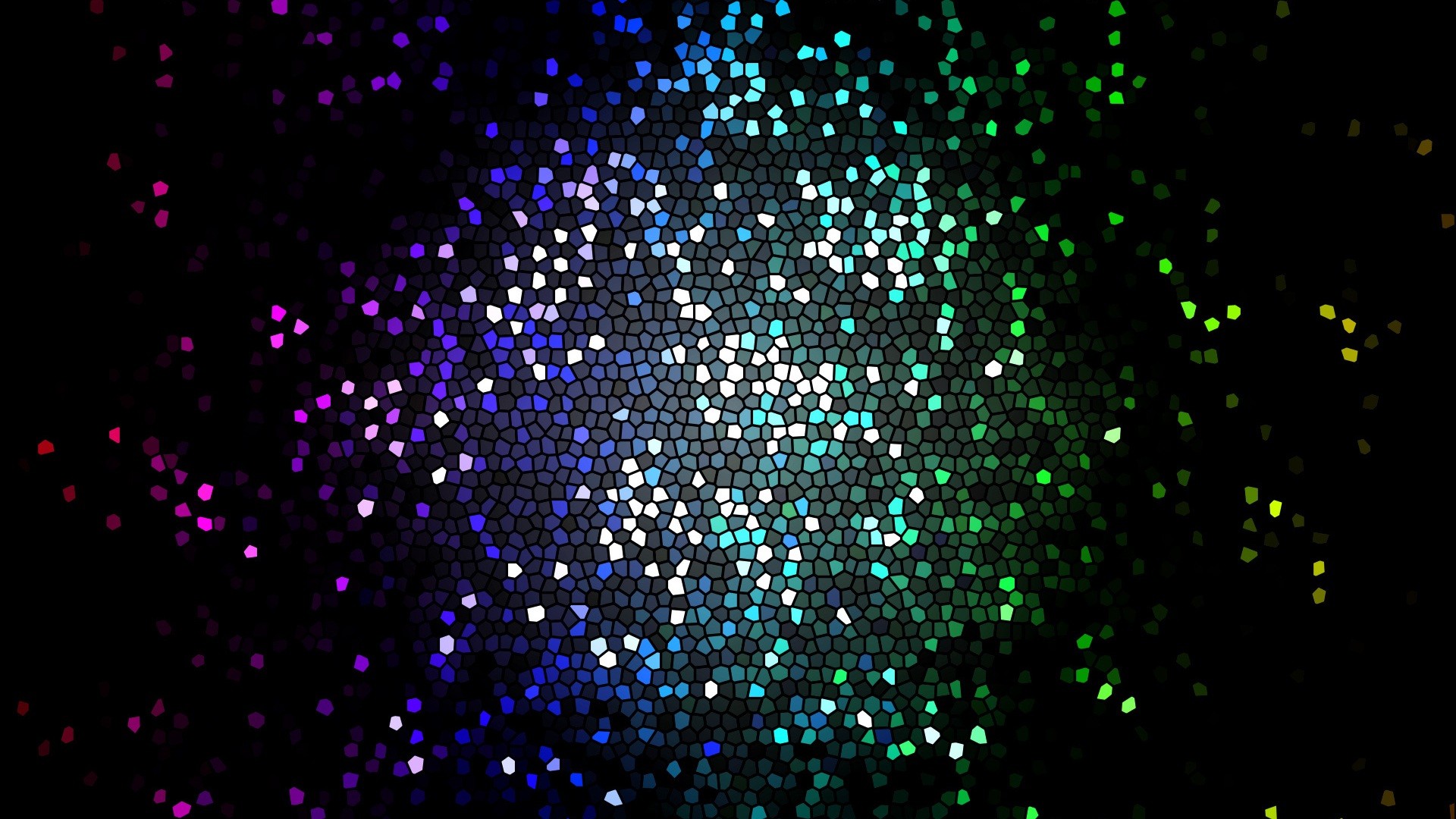 Description: A colorful background with a lot of dots on it's surface and a black background with a white circle.