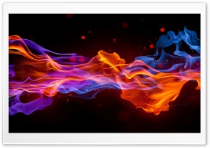 Description: A picture of a colorful fire on a black background with a white frame and a white border around it.