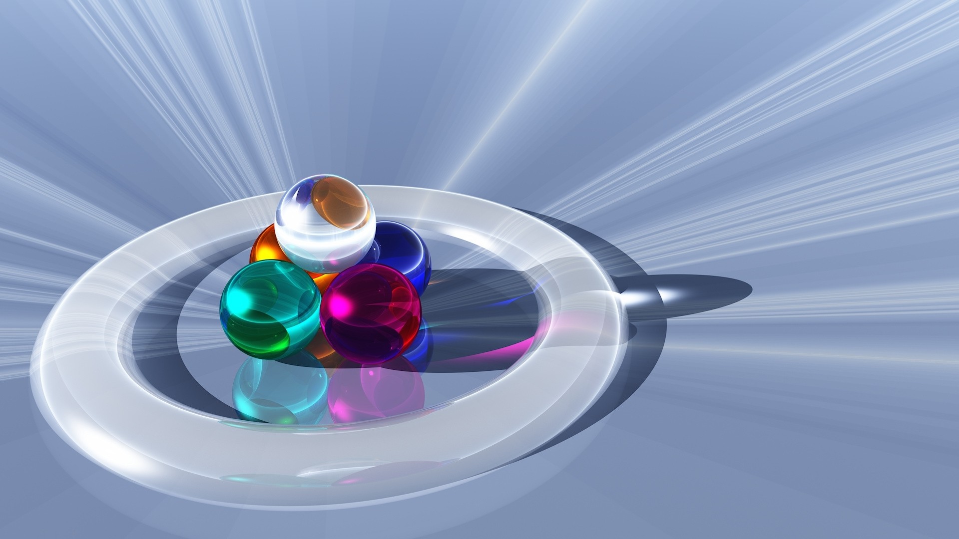 Description: A colorful object is sitting on a white plate with a blue background and a white light shining through it.