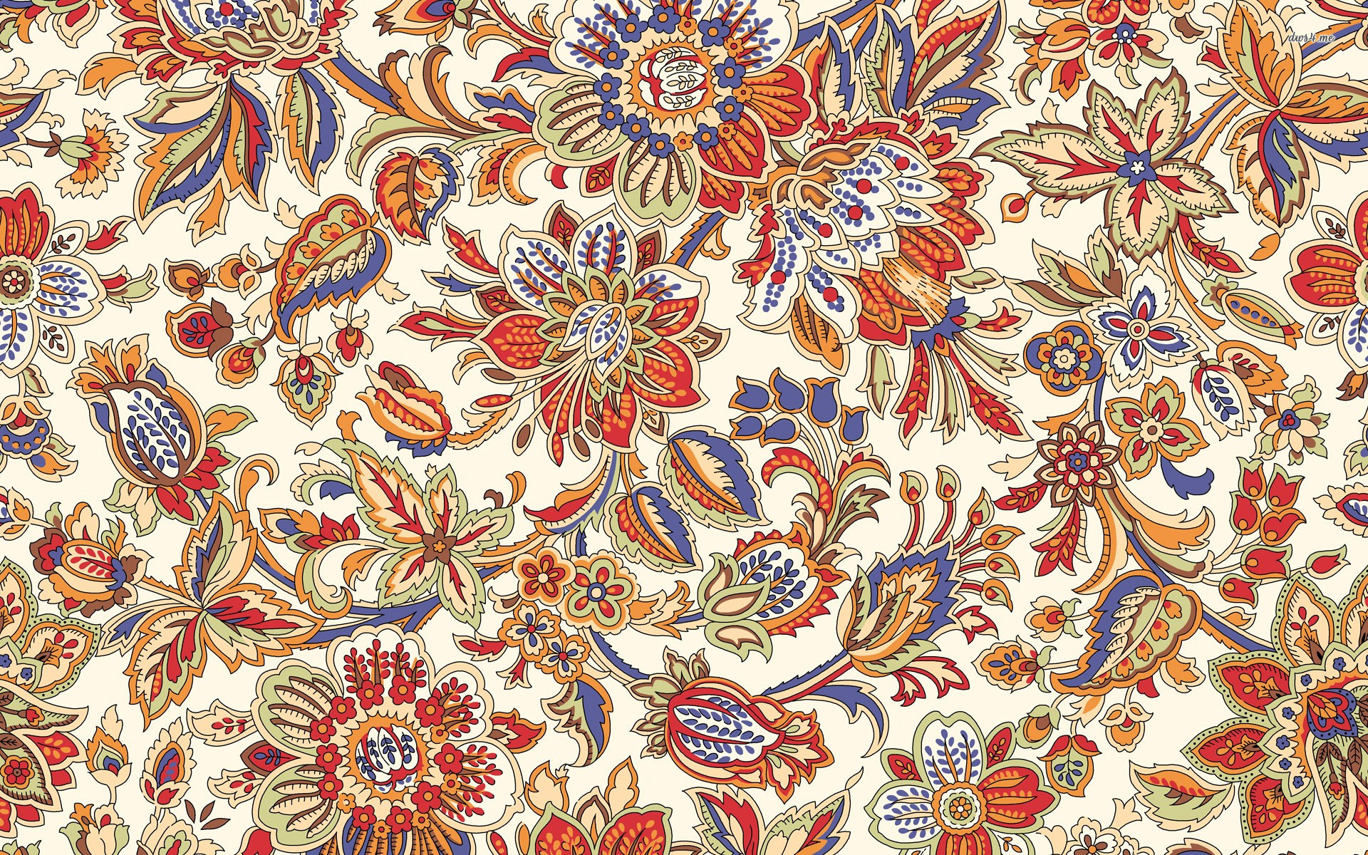 Description: A very colorful and ornate pattern on a white background with red.