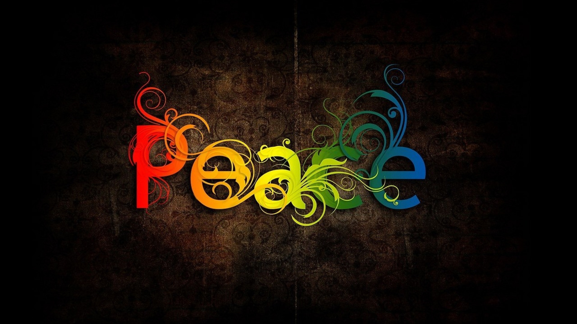 Description: A colorful peace sign with swirls and a black background with a red.