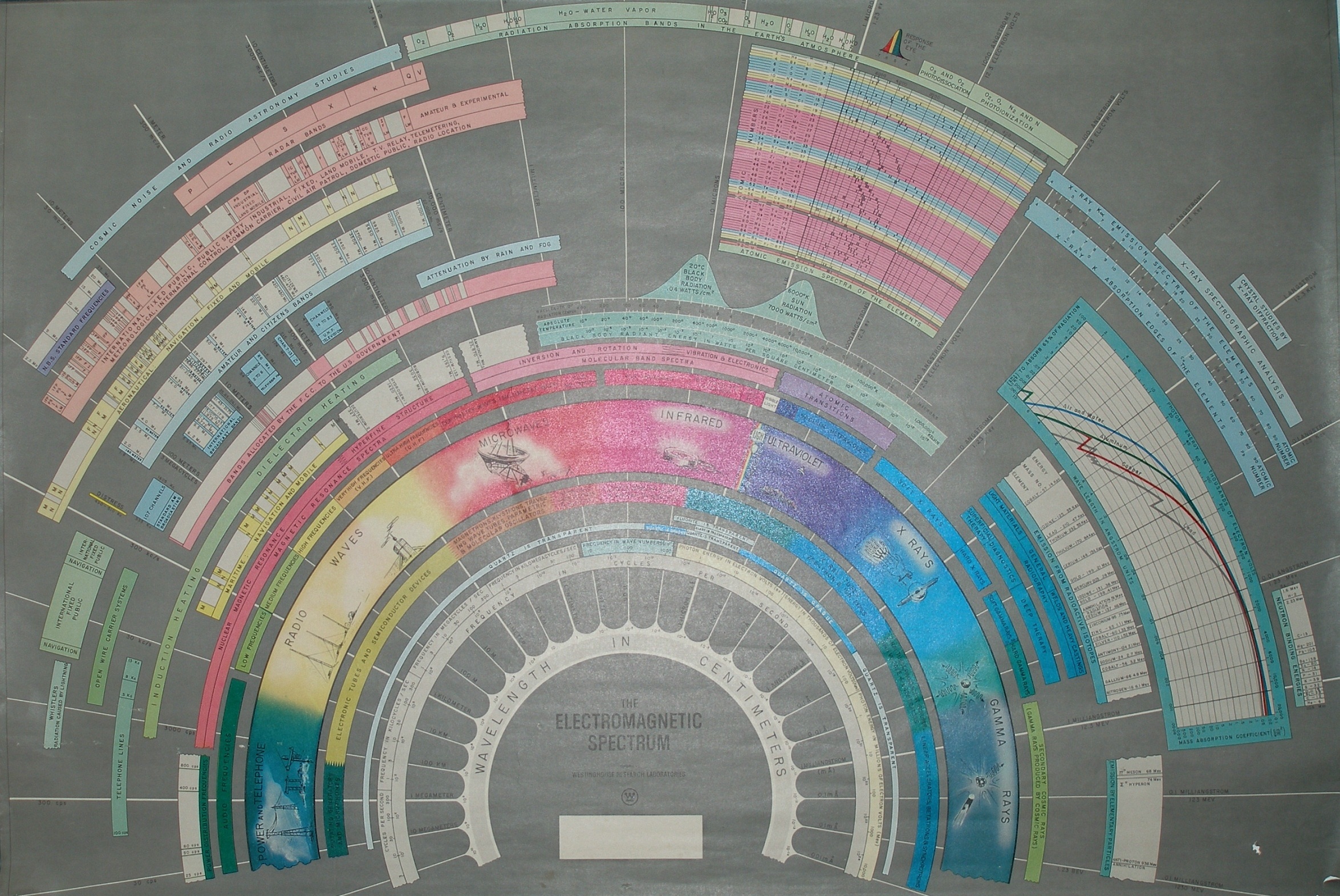 Description: A large poster with a bunch of different colors on it's side of it's wall and a clock tower in the middle.
