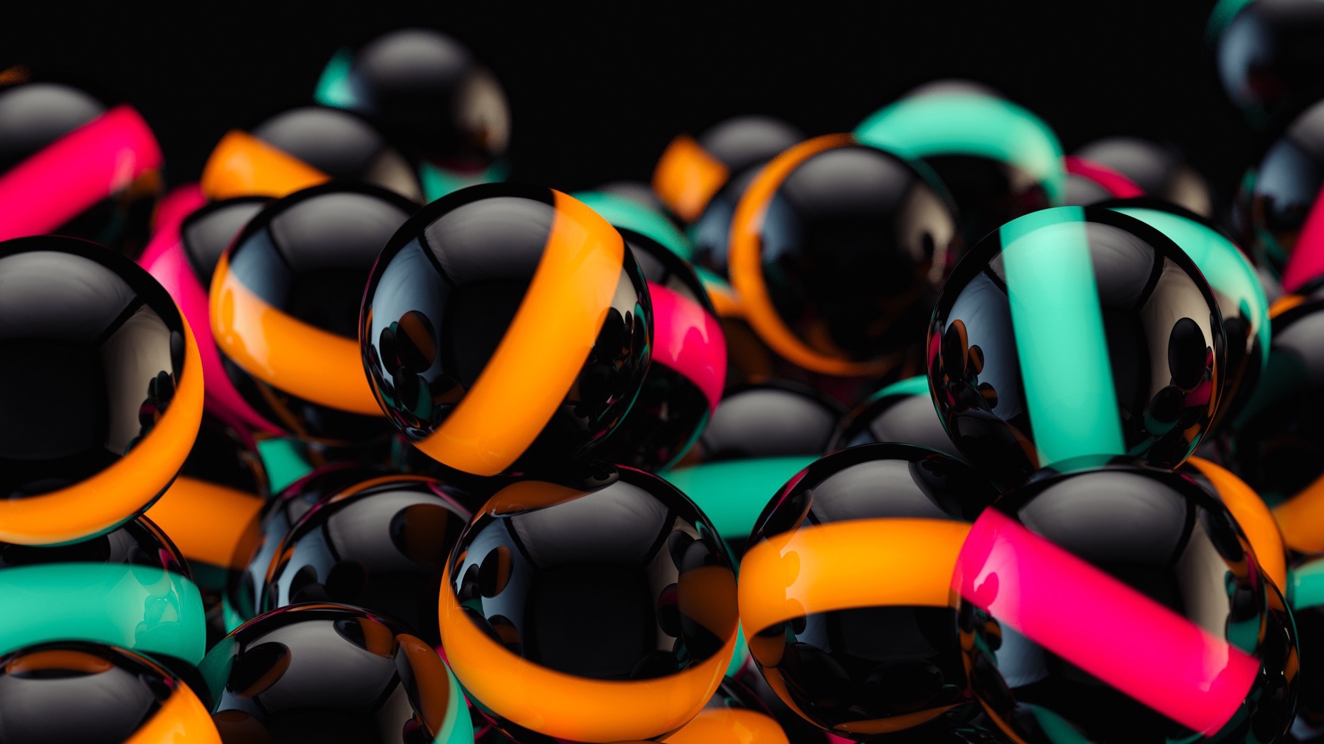 Description: A bunch of balls with different colors and shapes on them.