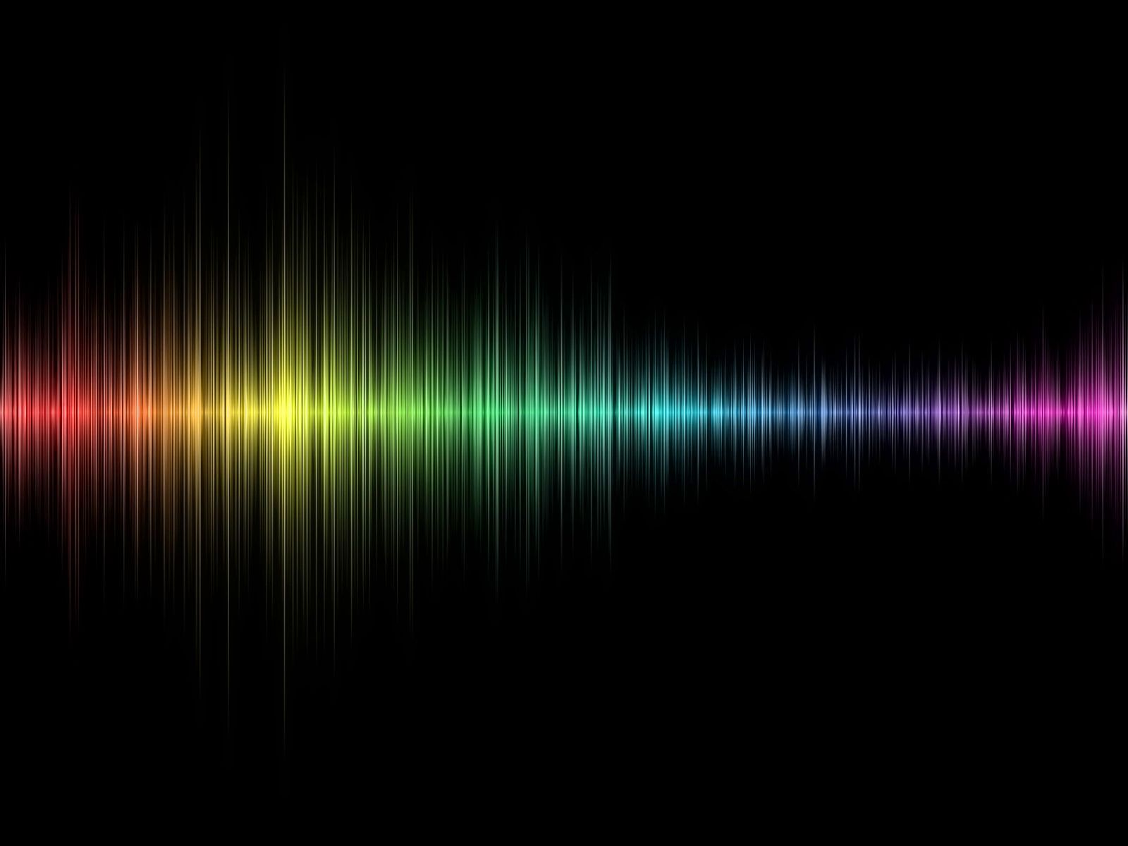 Description: A colorful sound wave on a black background with a reflection of light on the sound waves of the sound.