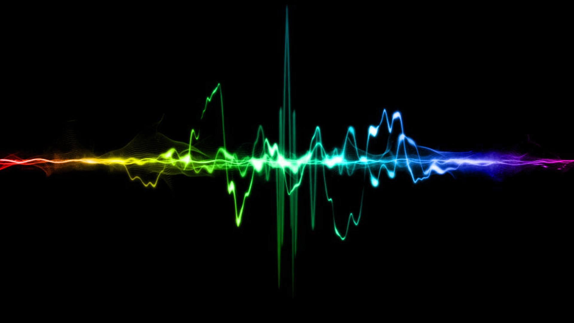 Description: A colorful sound wave on a black background with a black background and a white line of sound waves in the foreground.