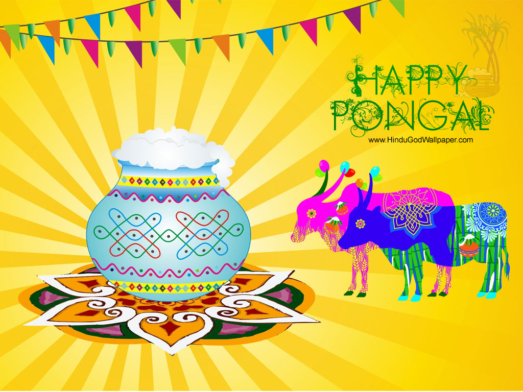 Description: A colorful illustration of a vase with a cow and a cow on a colorful background with bunting and flags.