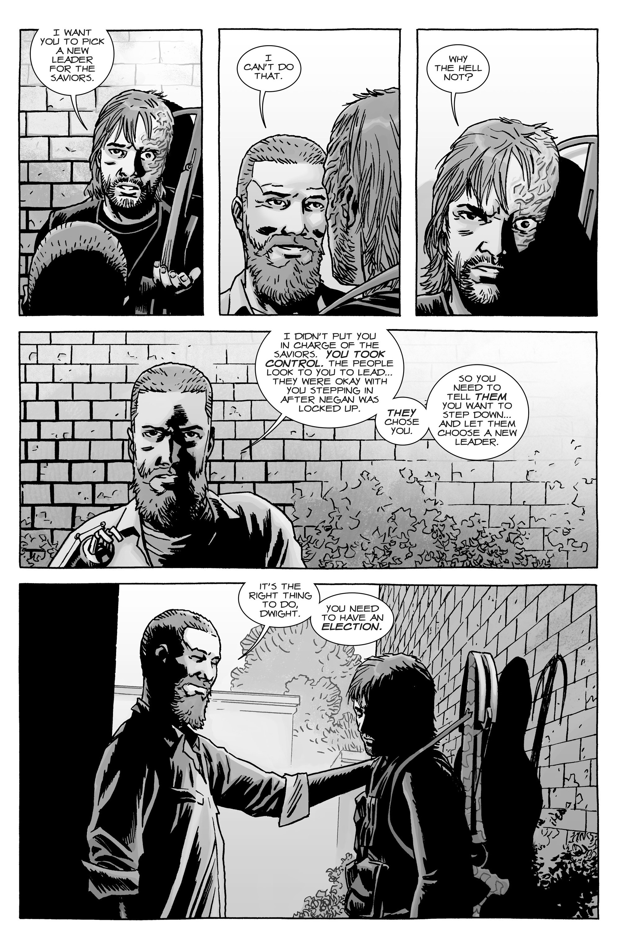 Description: A comic strip with a man talking to another man in the background and a brick wall with a brick wall.