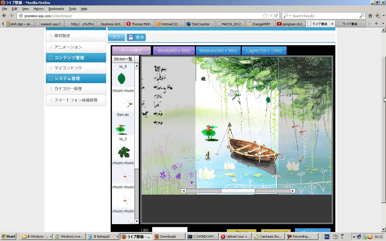 Description: A computer screen with a boat on the water and a tree in the background with asian characters on it.