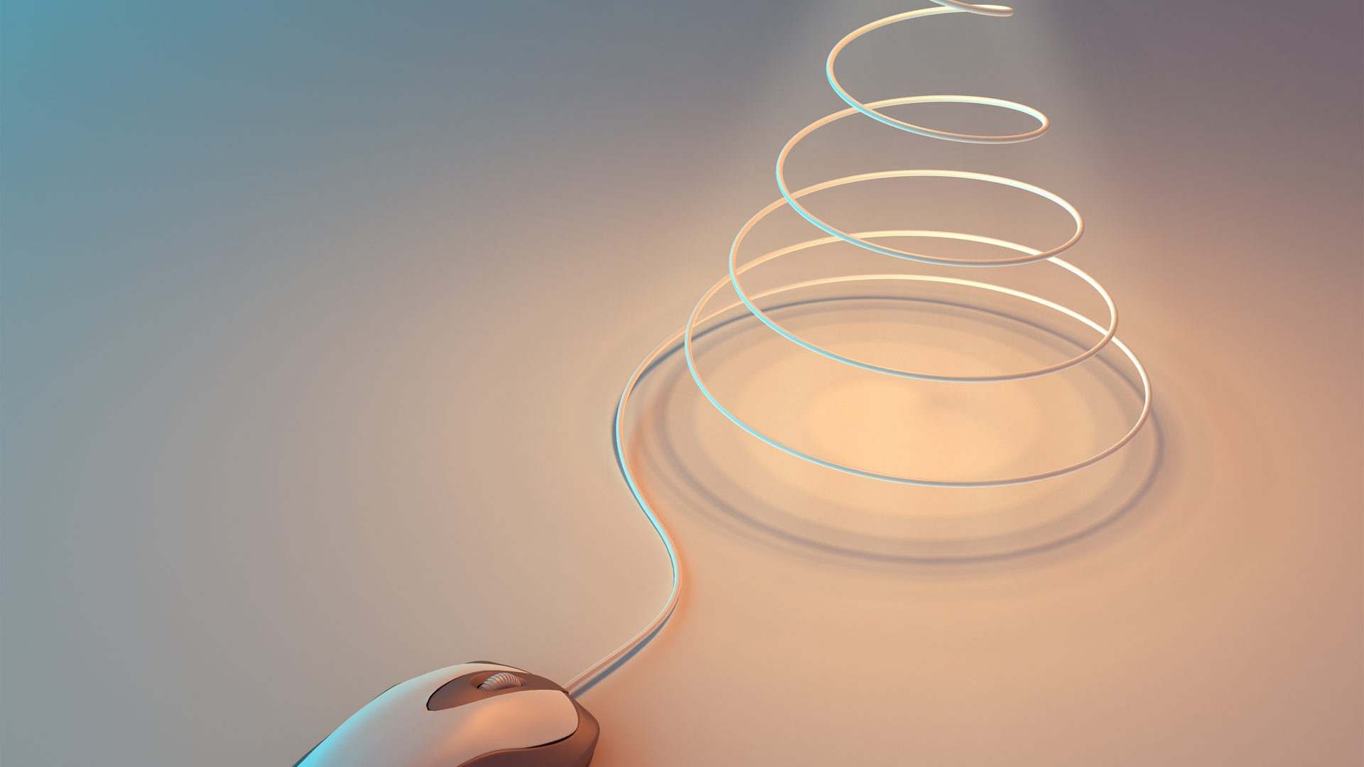 Description: A computer mouse with a spiral design on it's side and a light shining on the side of the mouse.