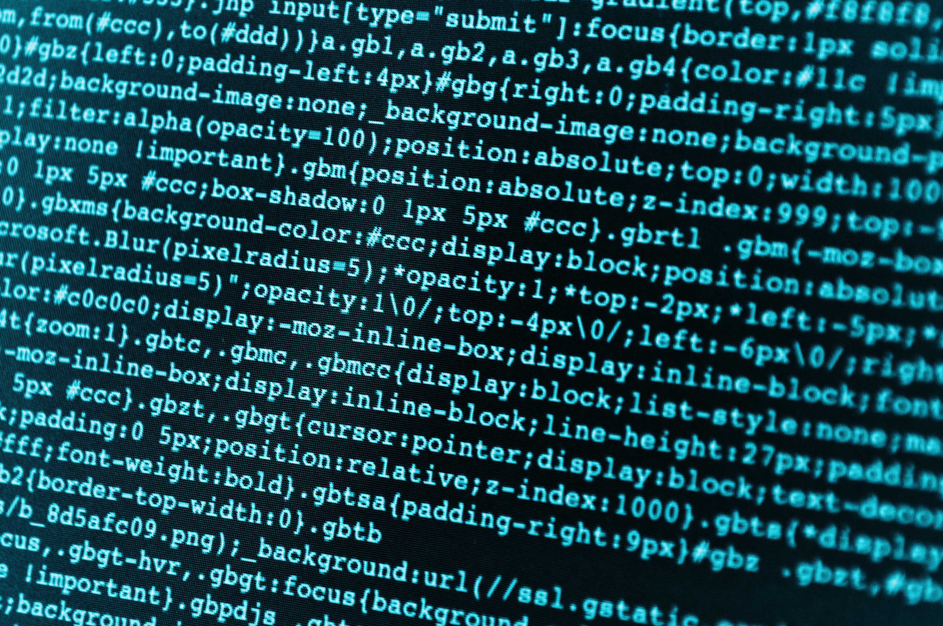 Description: A computer screen with a lot of blue text on it's side and a black background with white letters.