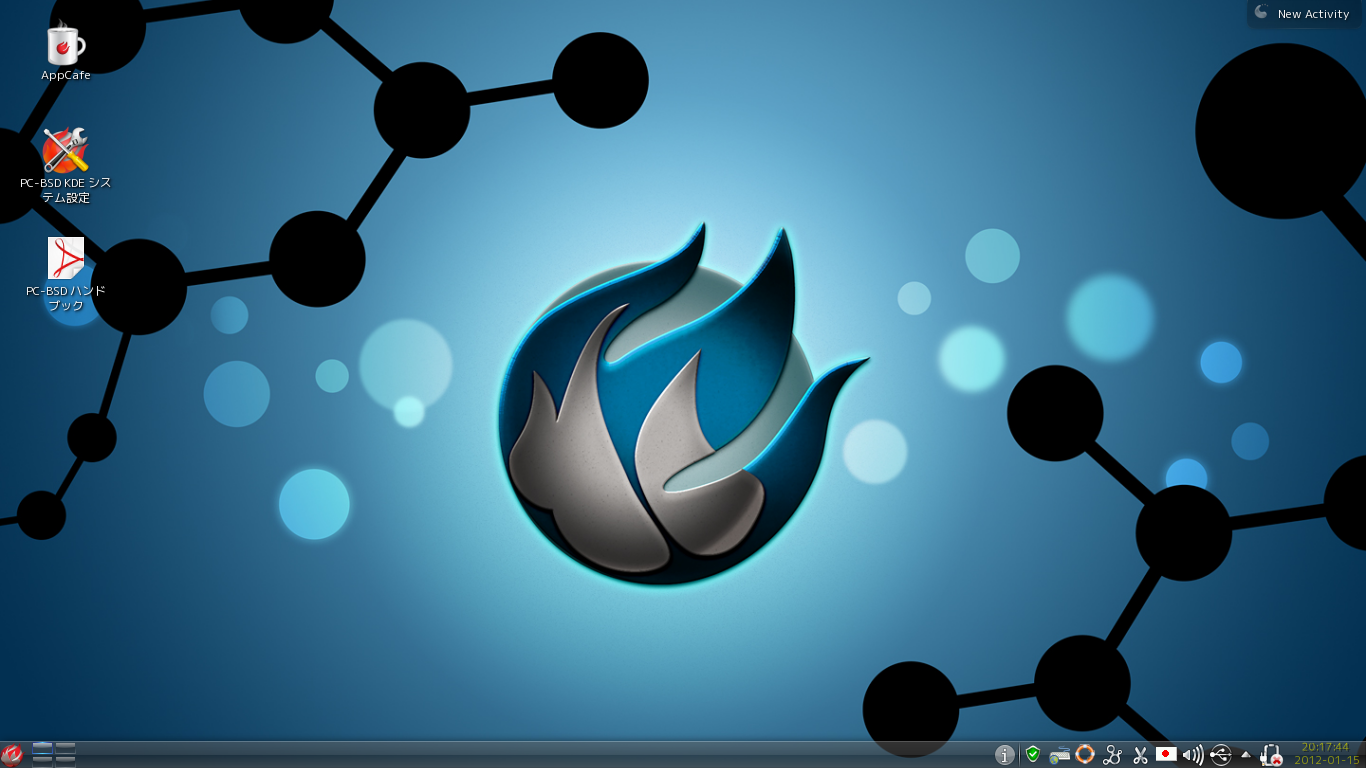 Description: A computer screen with a blue and white logo on it and a blue background with black dots and circles.