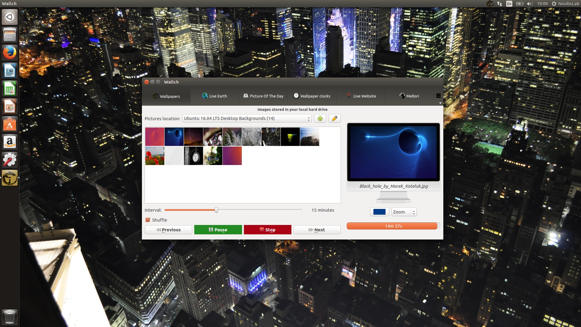 Description: A computer screen with a picture of a city at night in the background and a web page with a picture of a blue object.