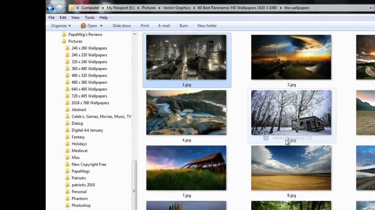 Description: A computer screen with a bunch of pictures on it's screen and a window with a picture of a city.