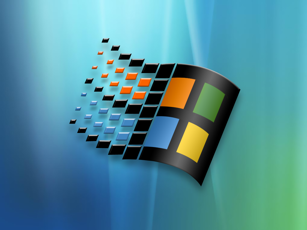 Description: A computer screen with a colorful background and a window logo on it's side.
