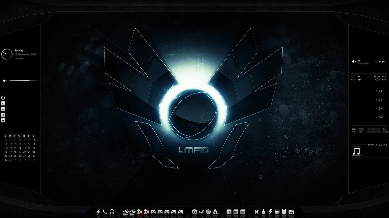 Description: A computer screen with a dark background and a glowing circle in the middle of it.