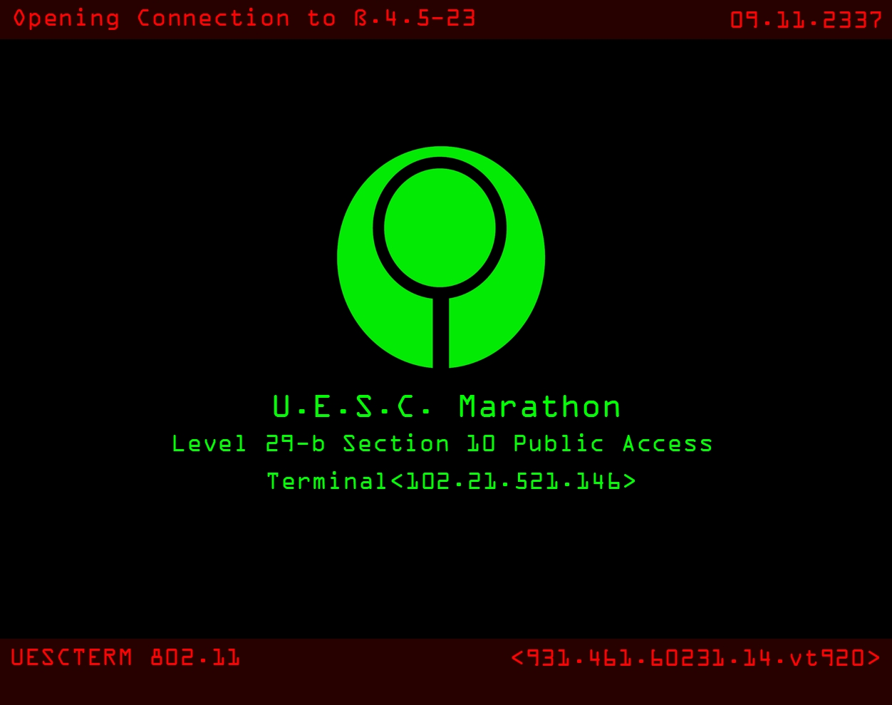 Description: A computer screen with a green logo on it and a black background with a red border and a green circle.