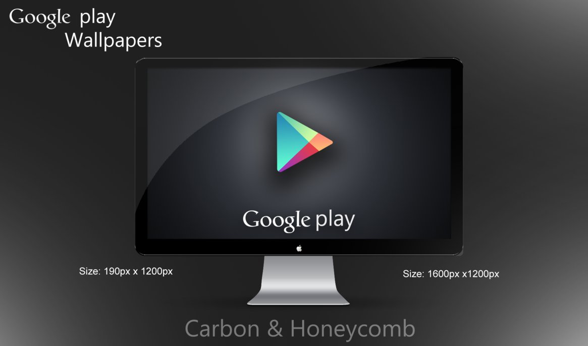 Description: A computer screen with a play button and a google play button on it's side and the caption google play below.