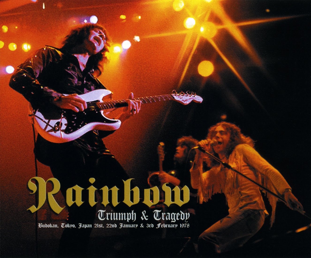 Description: A concert poster with a band playing on stage and a man singing into a microphone and a guitar in front of him.