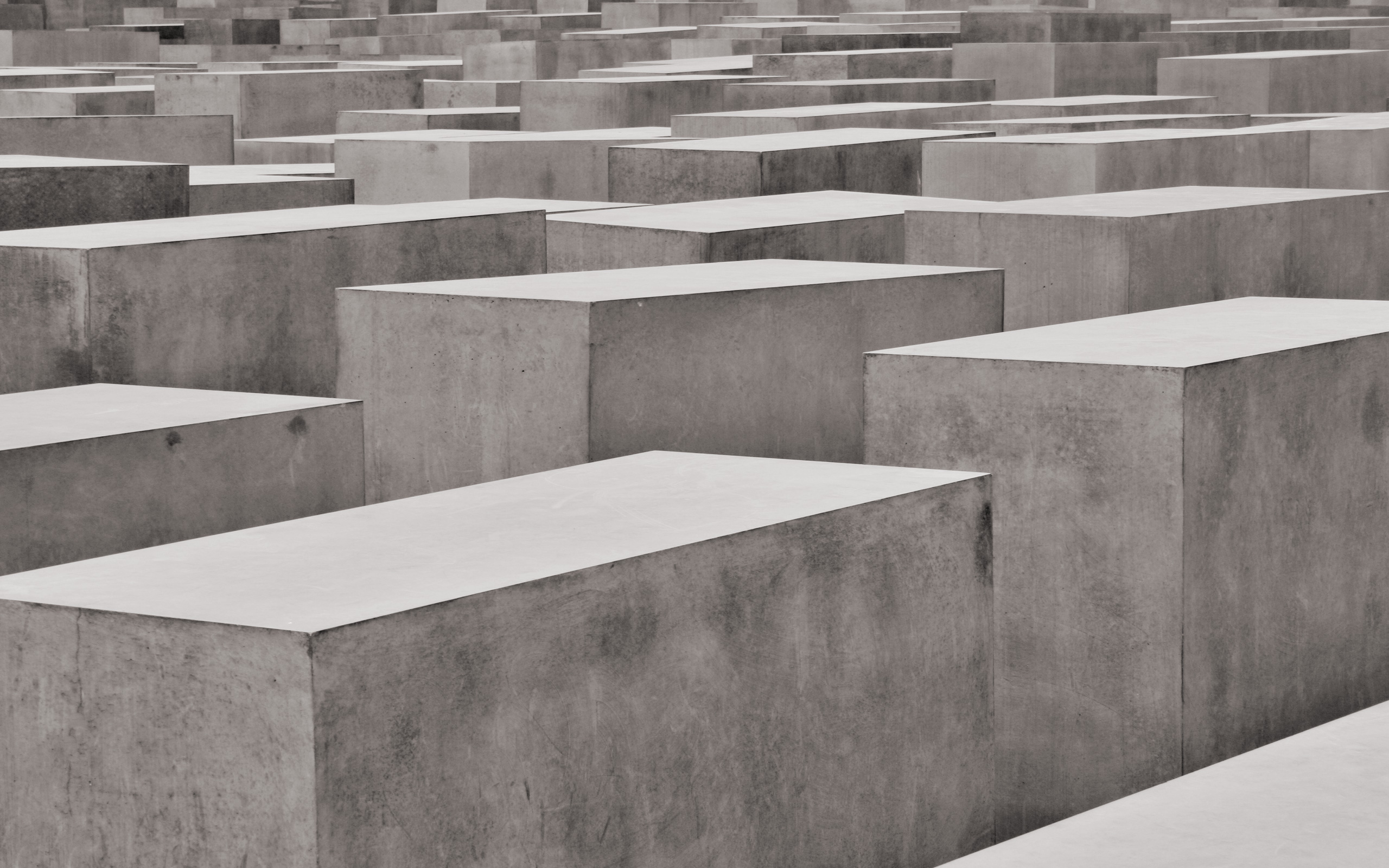 Description: A large group of concrete blocks sitting next to each other on a field of cement blocks with a sky background.
