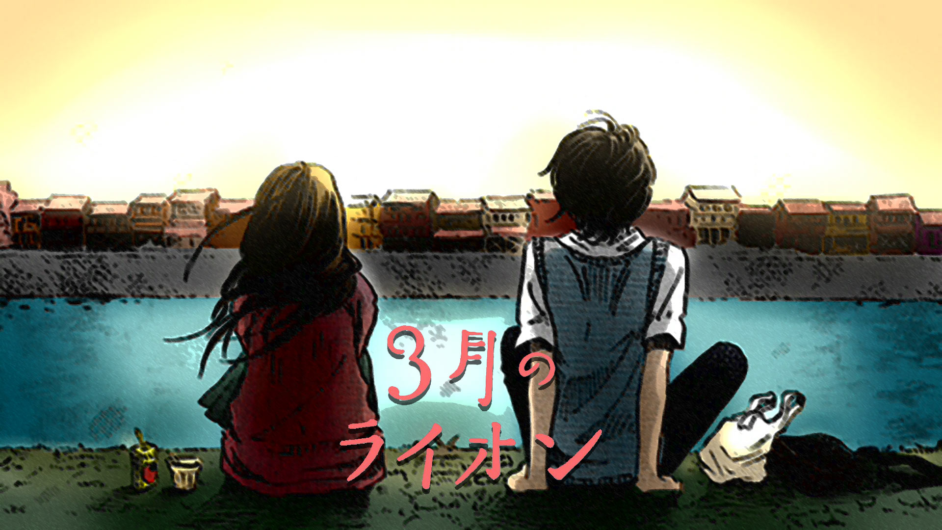 Description: A couple of people sitting on a bench next to a river and a train on the tracks behind them.