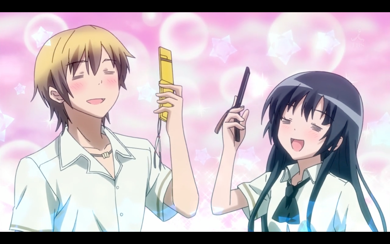 Description: A couple of people that are holding up a cell phone in their hands and a cell phone in their hand.