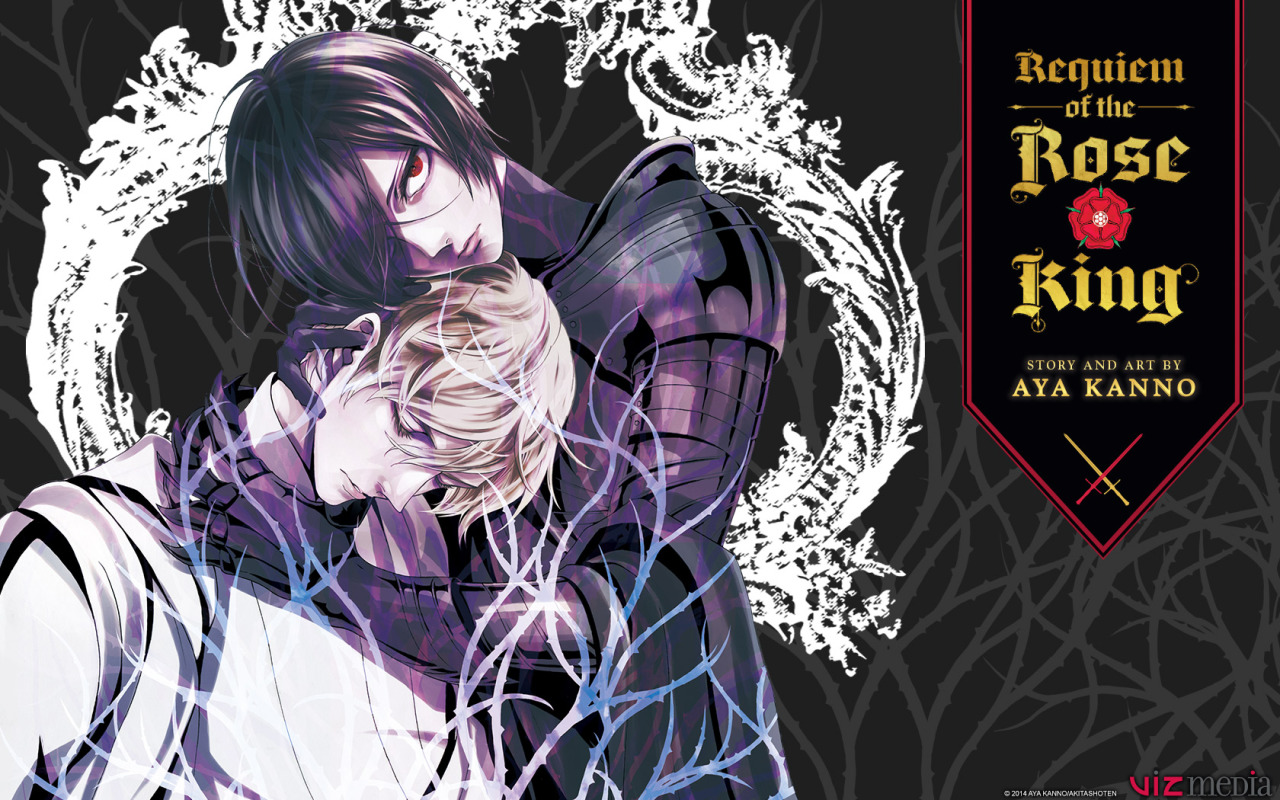 Description: A couple hugging each other in front of a black background with white branches and a red and black banner.