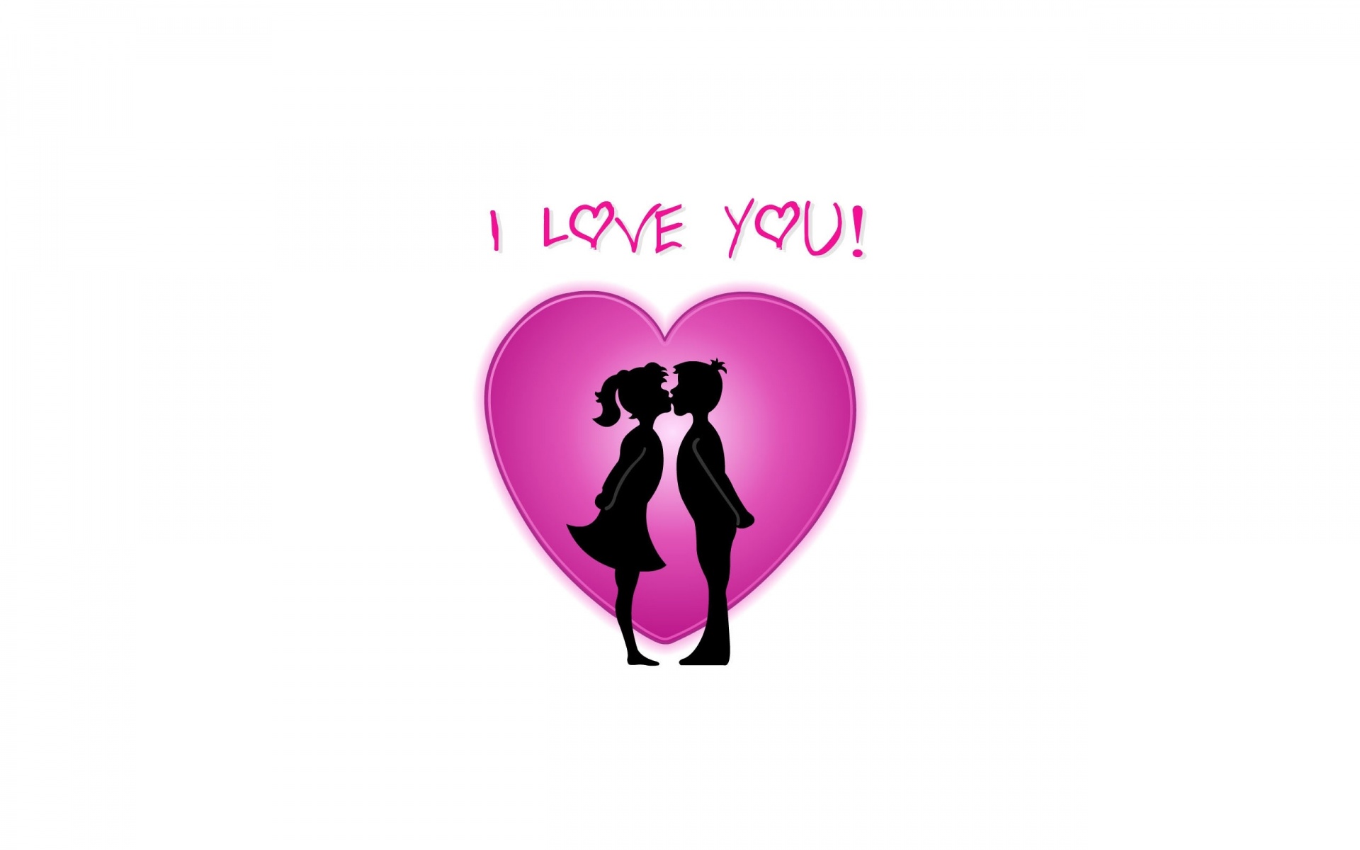 Description: A couple kissing in front of a heart with the words i love you written on it in pink and black.