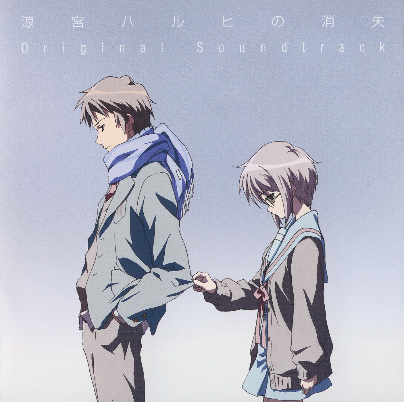 Description: A couple of people standing next to each other on a field of grass and water with the words original sound track written in japanese.