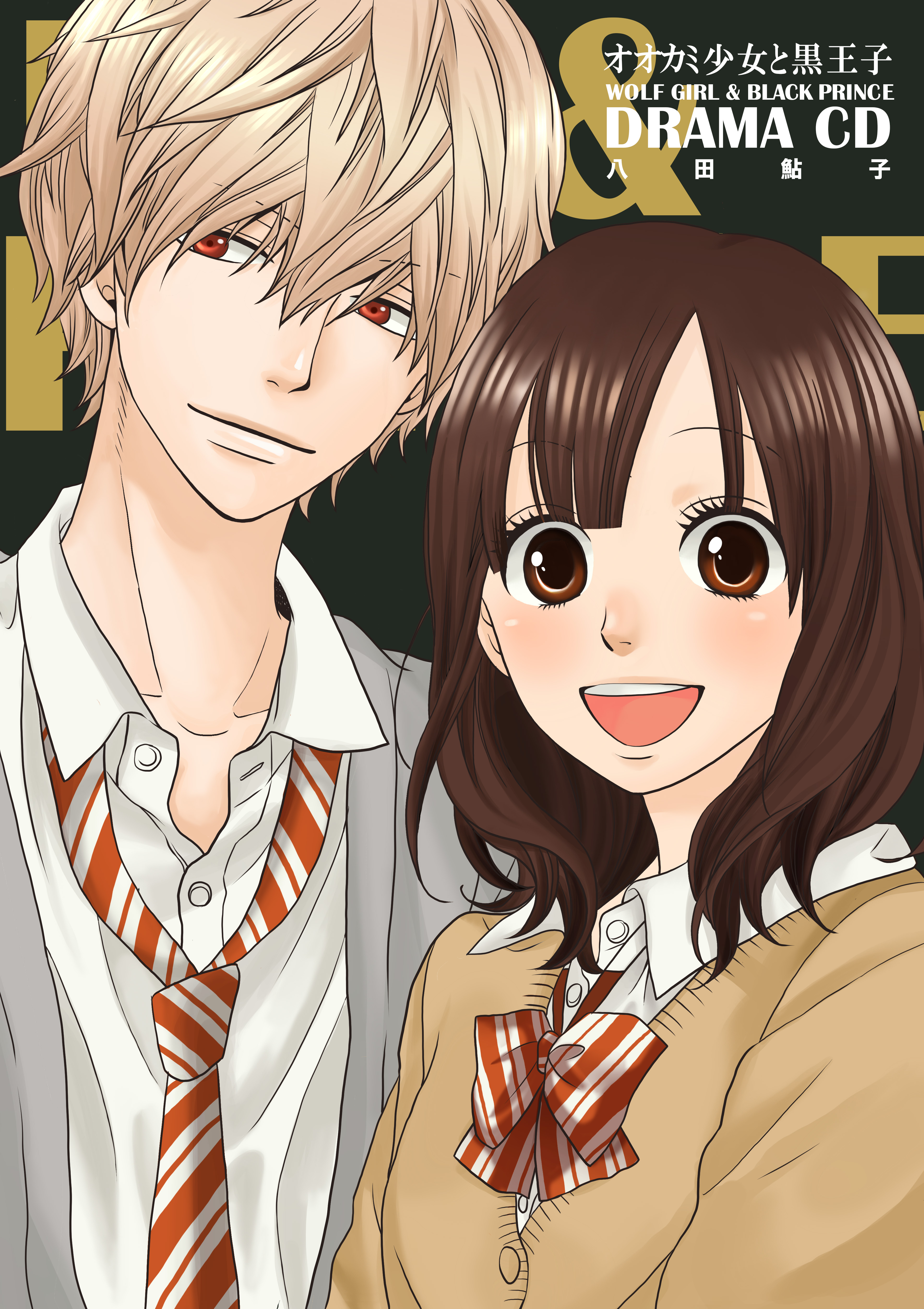 Description: A couple of people that are standing together in front of a magazine cover with the title drama cd on it.