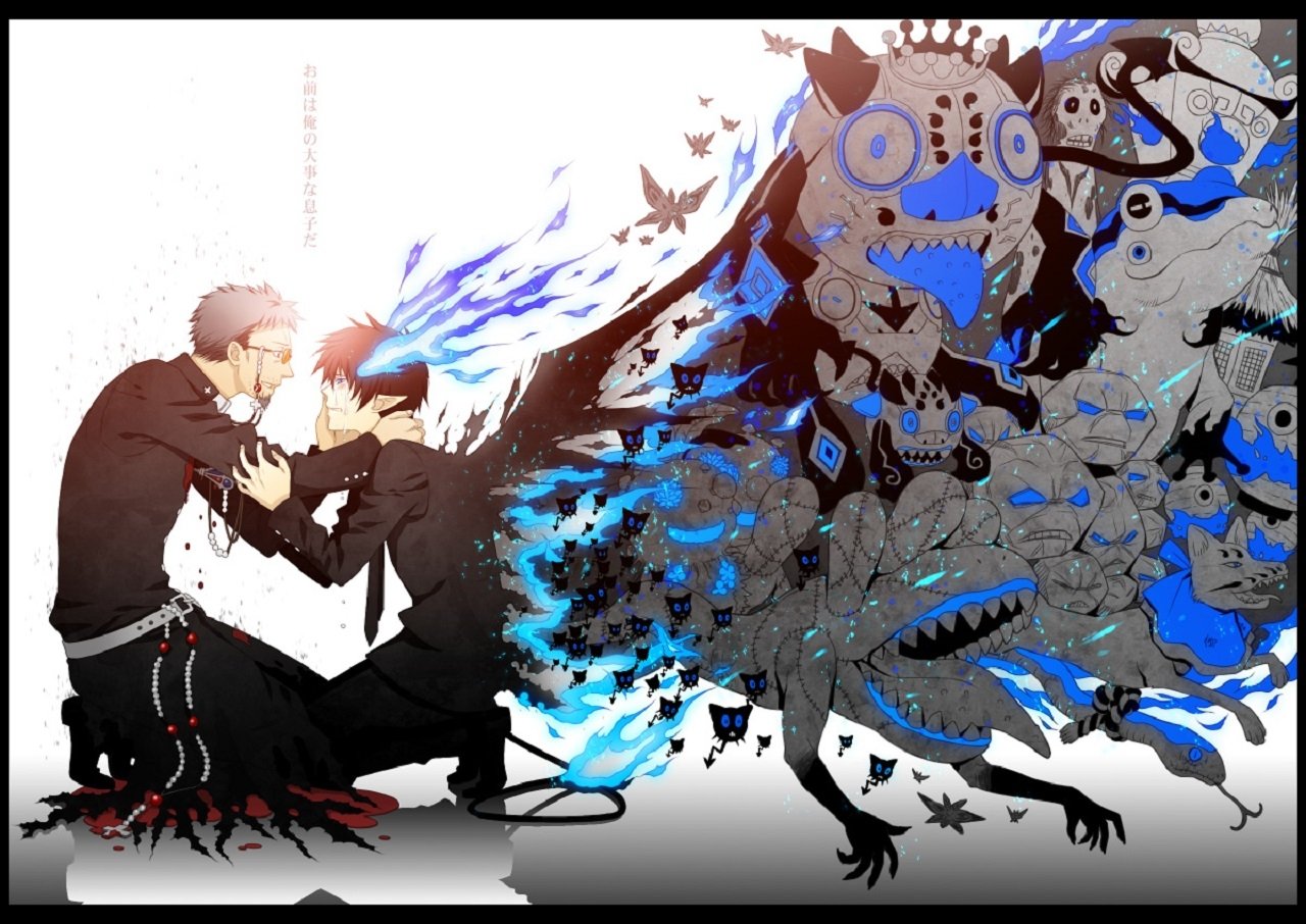 Description: A couple of people sitting next to each other near a fire hydrant and a monster with blue flames.
