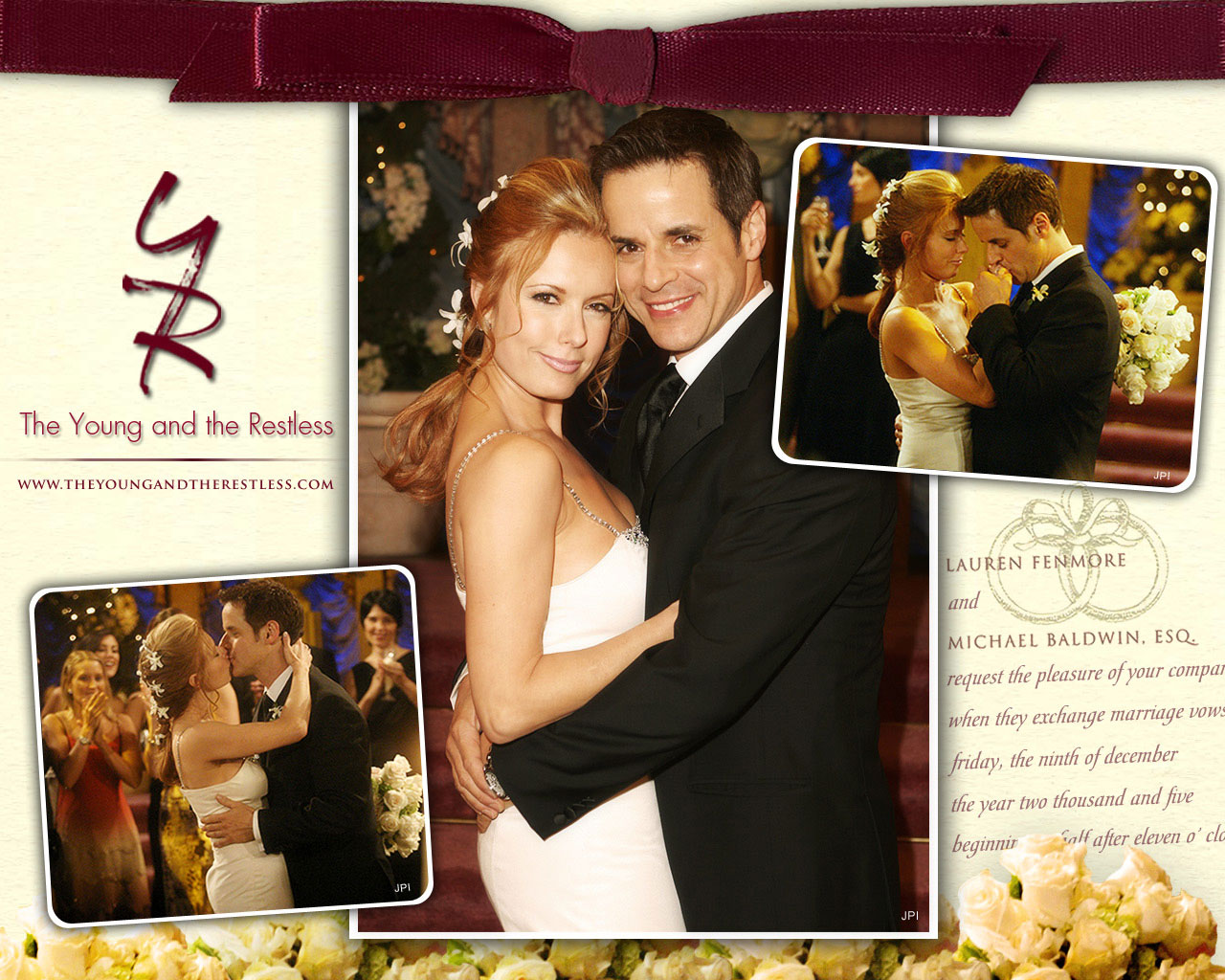 Description: A picture of a couple in a wedding photo collage with a red ribbon around it and a picture of them.