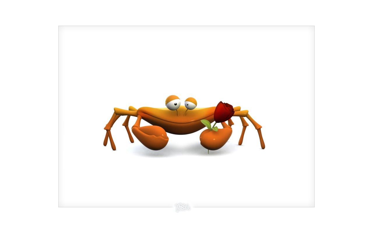 Description: A crab with a rose in its mouth and eyes on it's back legs.