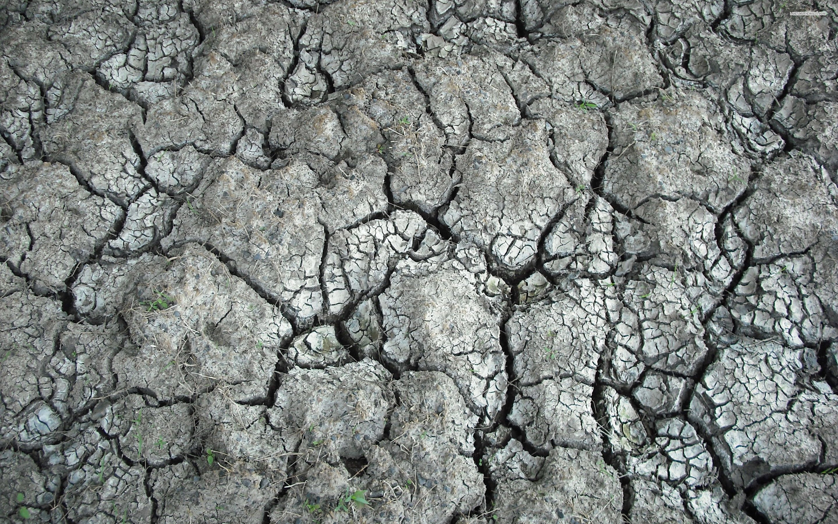 Description: A cracked tree trunk with grass growing on it's sides and dirt on the ground below it.