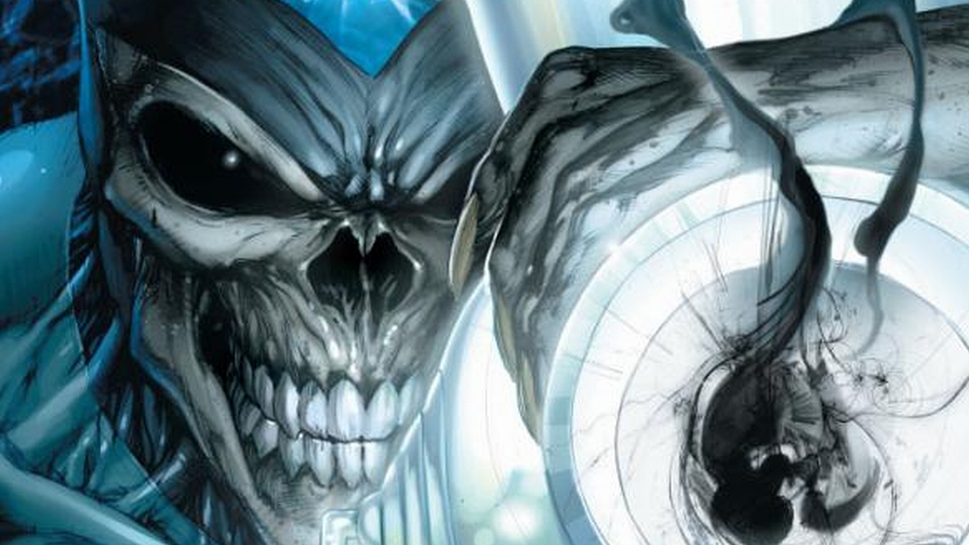 Description: A creepy looking alien with a huge head and a huge knife in his hand and a clock in his hand.