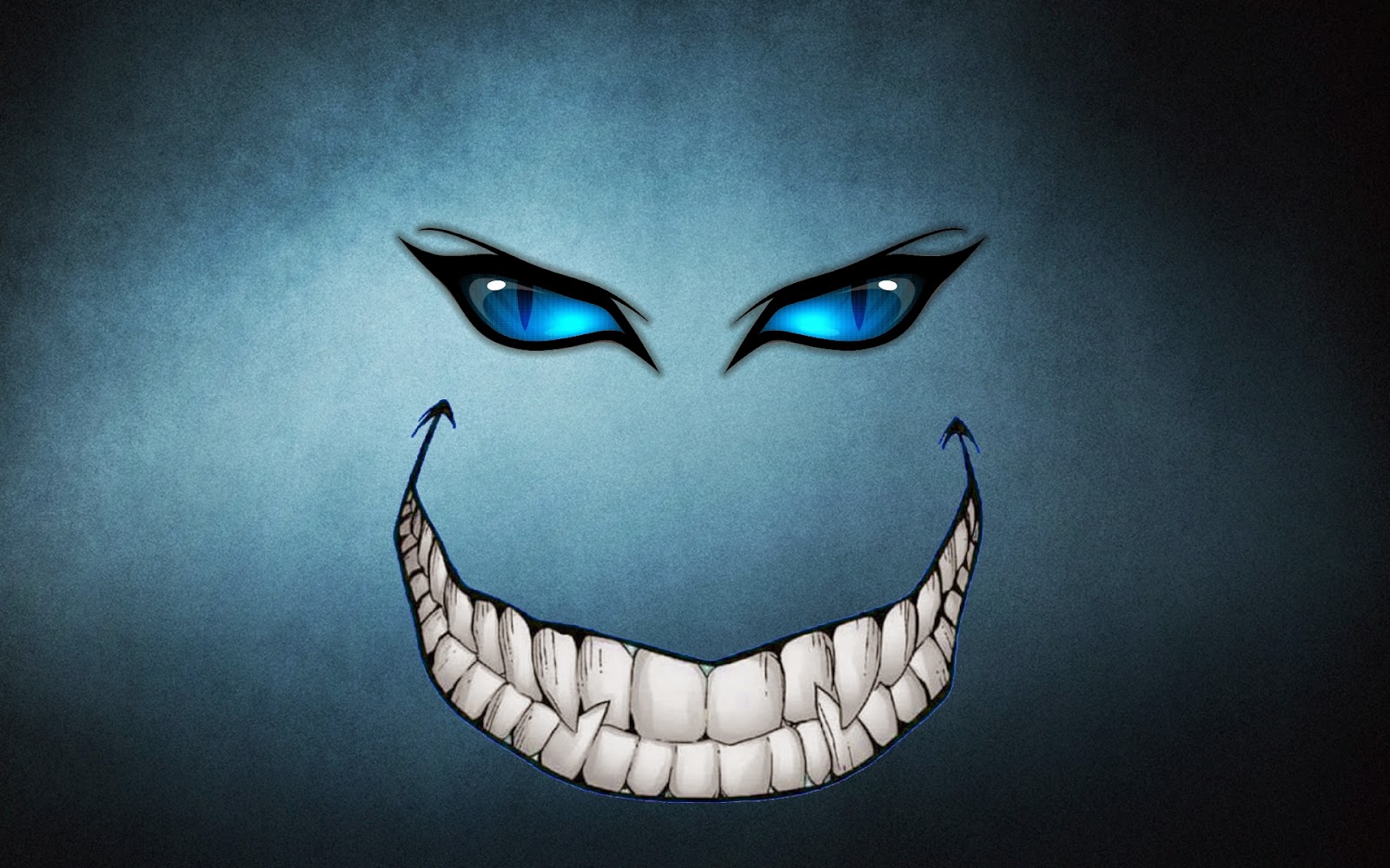 Description: A creepy face with blue eyes and a smile on it's face.