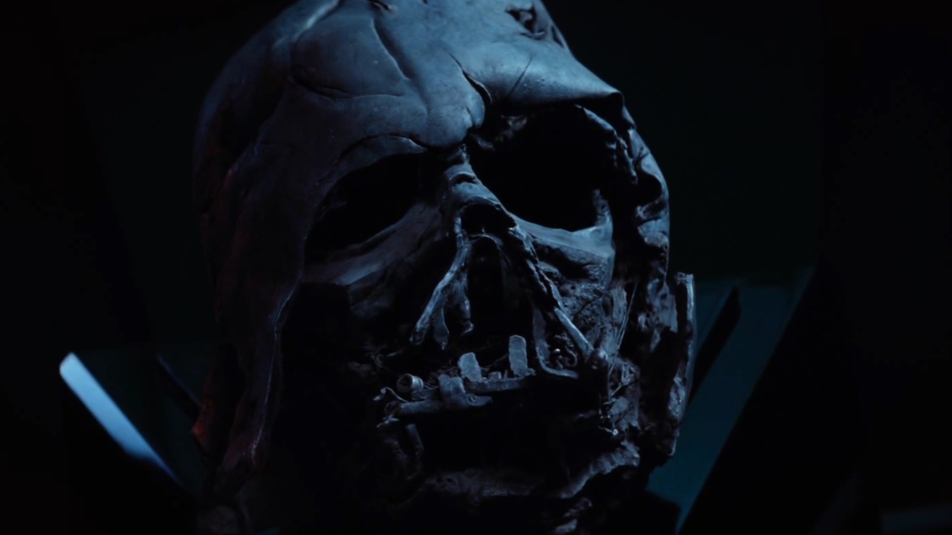 Description: A creepy looking skull with a knife in its mouth in a dark room with a black background and a black light.