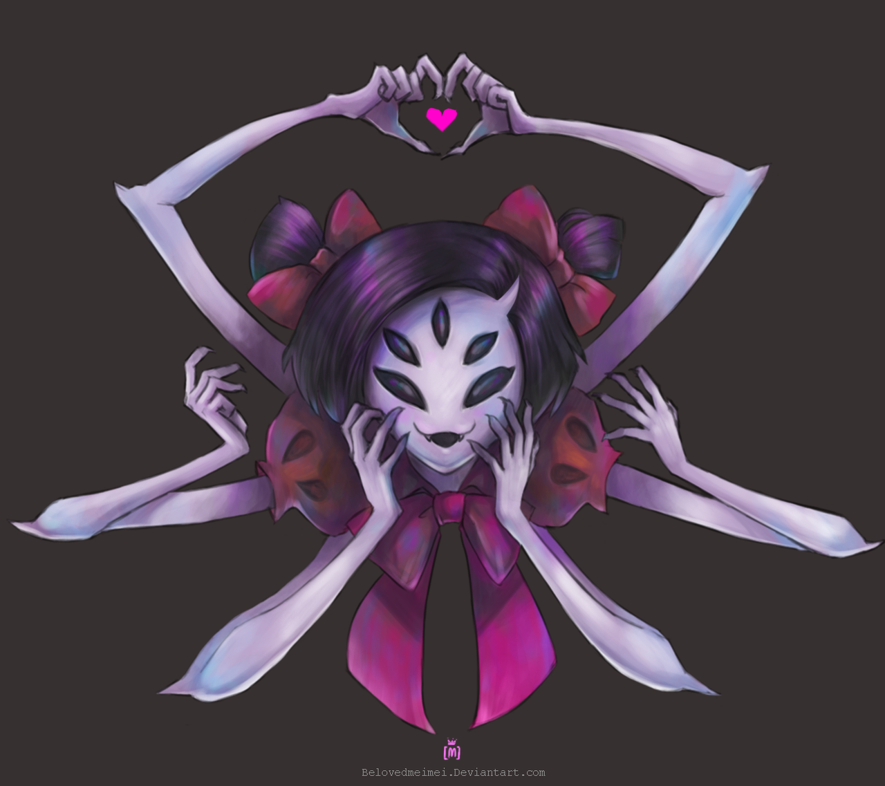 Description: A woman with a creepy face and a bow tie on her head is surrounded by arms and legs.