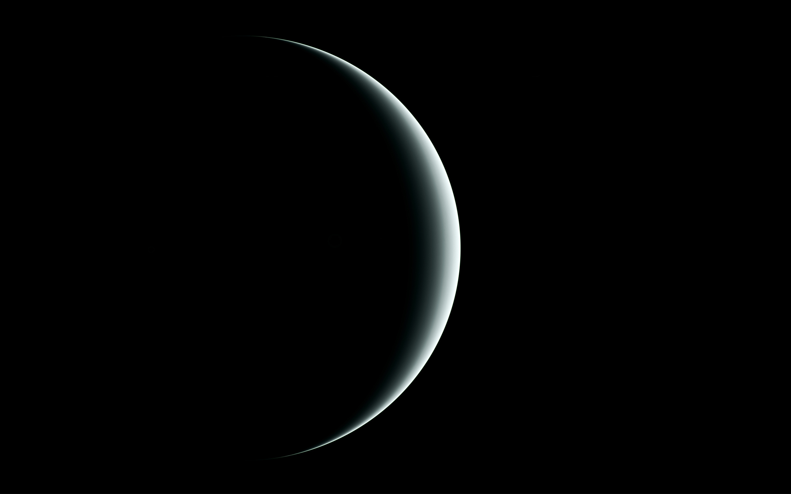 Description: A crescented object in the dark sky with a black background and a white line on the side of it.