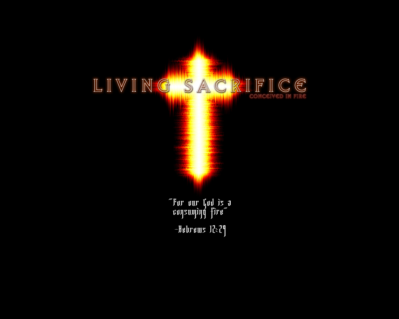 Description: A cross with a quote on it in the dark background of a computer screen with the words living sacrific.