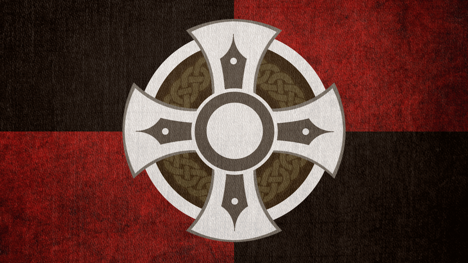 Description: A cross with a pattern on it on a red and black background with a black circle in the center.