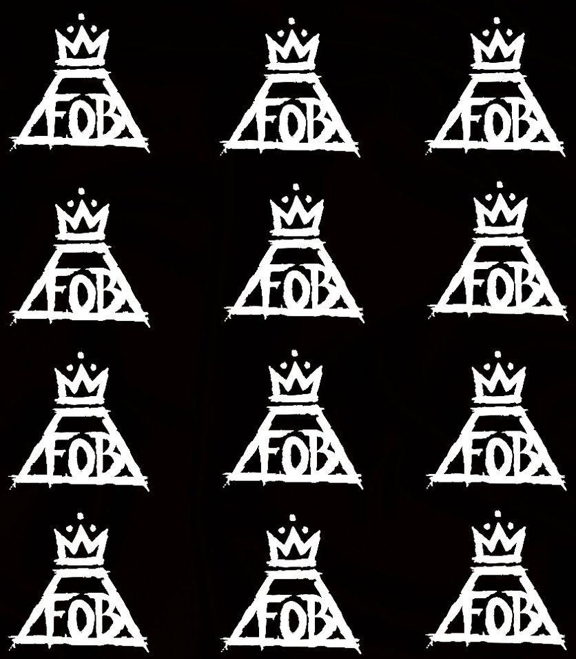 Description: A black and white photo of a crown and four letters with the letters fob on them in white.